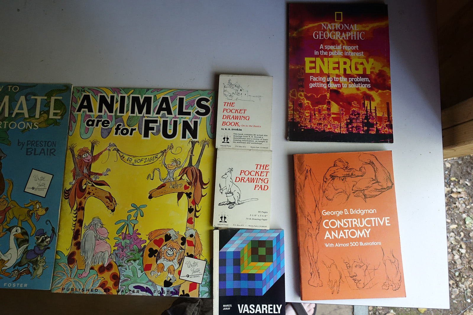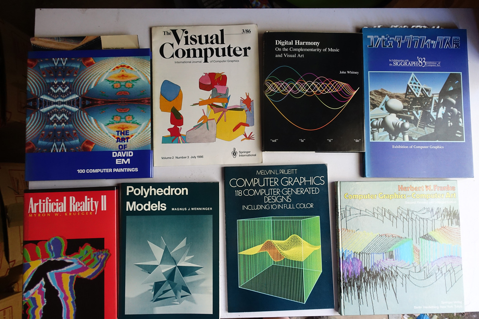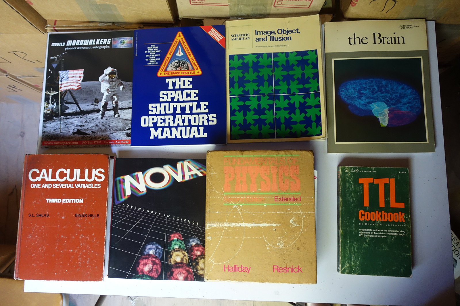 As you'll see, a lot of these are art and technical books that weren't cheap when they were purchased new. Some of the topics covered are: art, film, animation, cartoons, science fiction, computer art, computer graphics, computer science, electronics, math, science, space exploration. Nerd stuff.