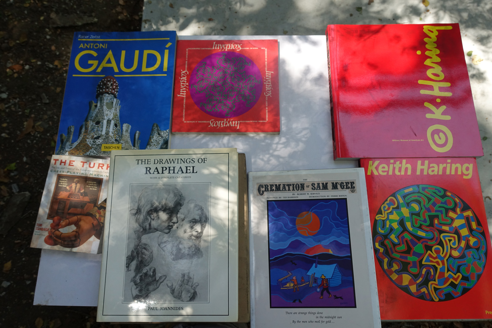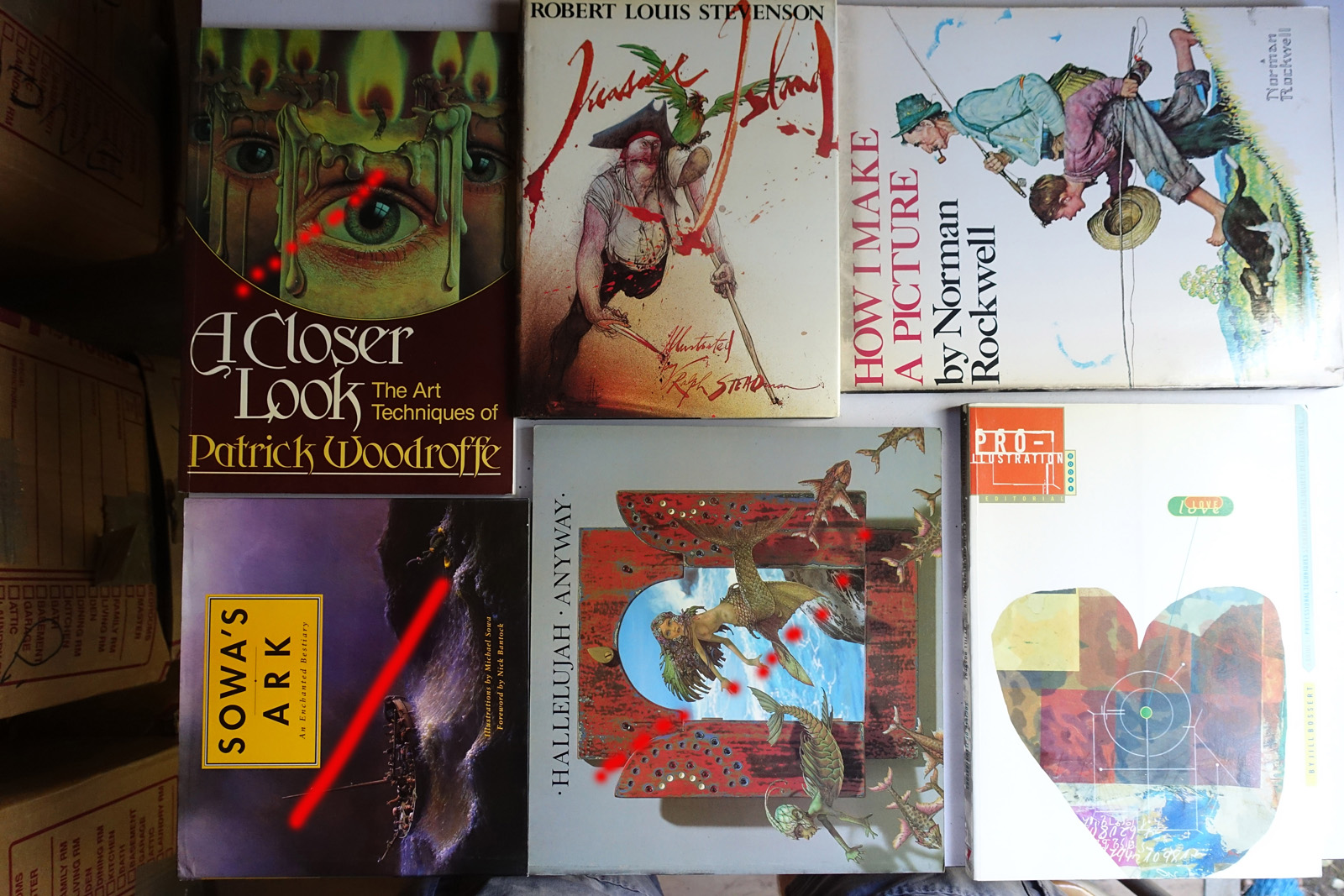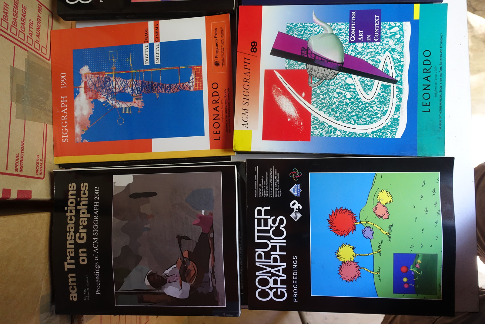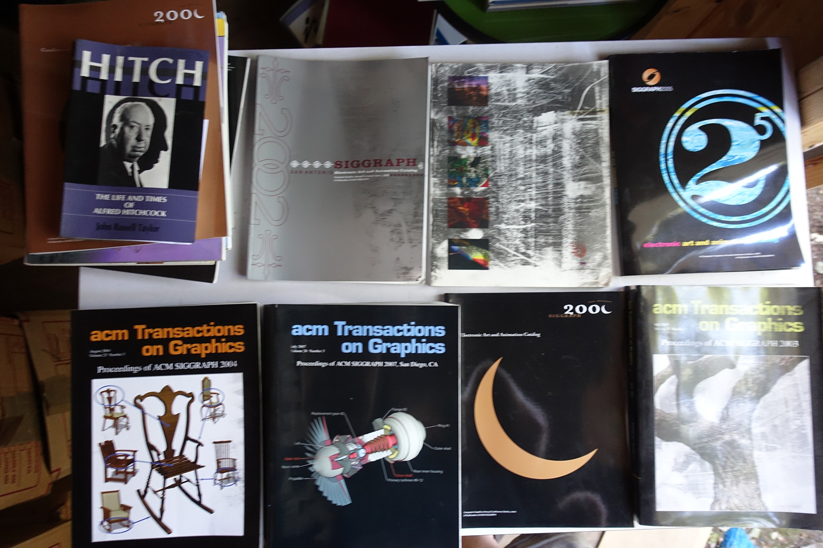 As you'll see, a lot of these are art and technical books that weren't cheap when they were purchased new. Some of the topics covered are: art, film, animation, cartoons, science fiction, computer art, computer graphics, computer science, electronics, math, science, space exploration. Nerd stuff.