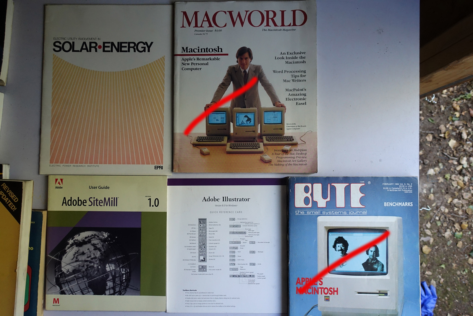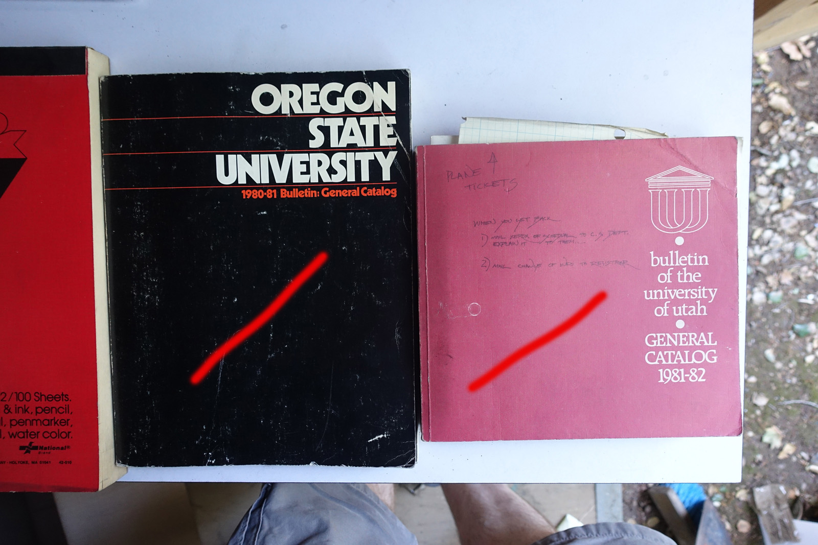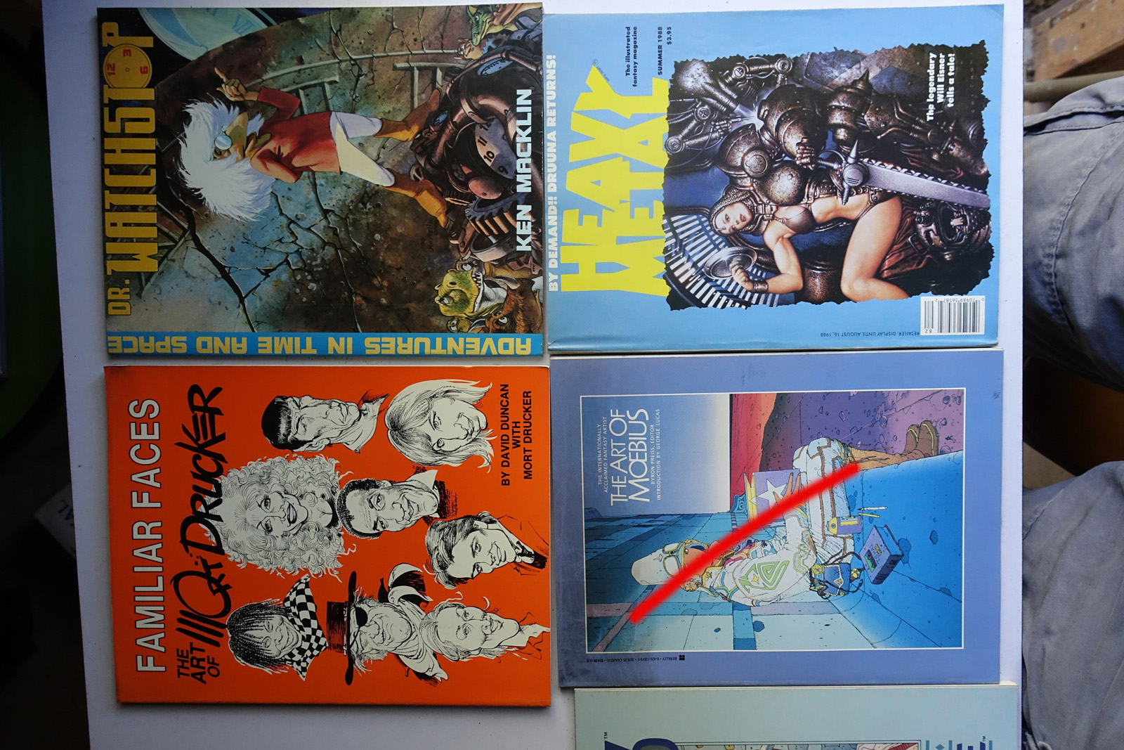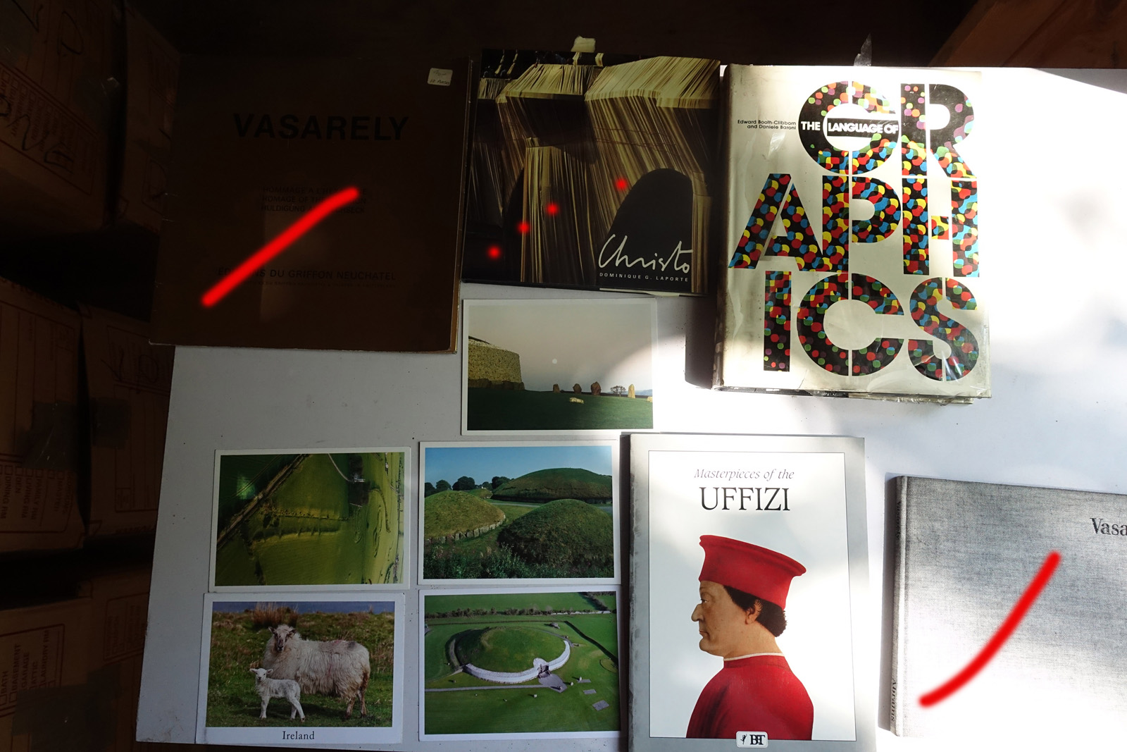 Books with red marks painted on the photo indicate volumes I've pulled aside, either for sentimental reasons or because I'm concerned I can't replace them. These are not available. This marking isn't 100% accurate, it's from memory after I took all the photos; so a few unmarked books may also be pulled aside.