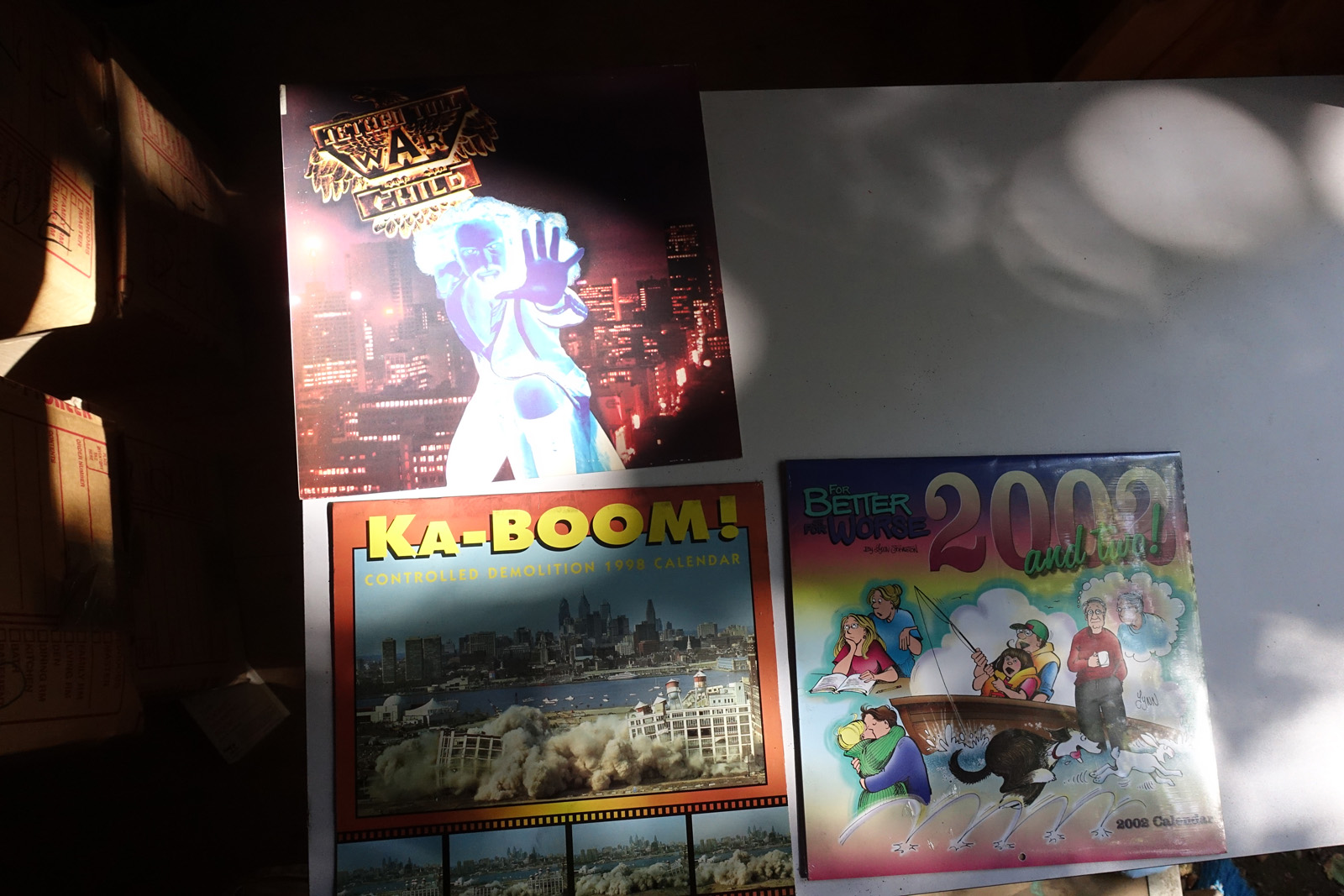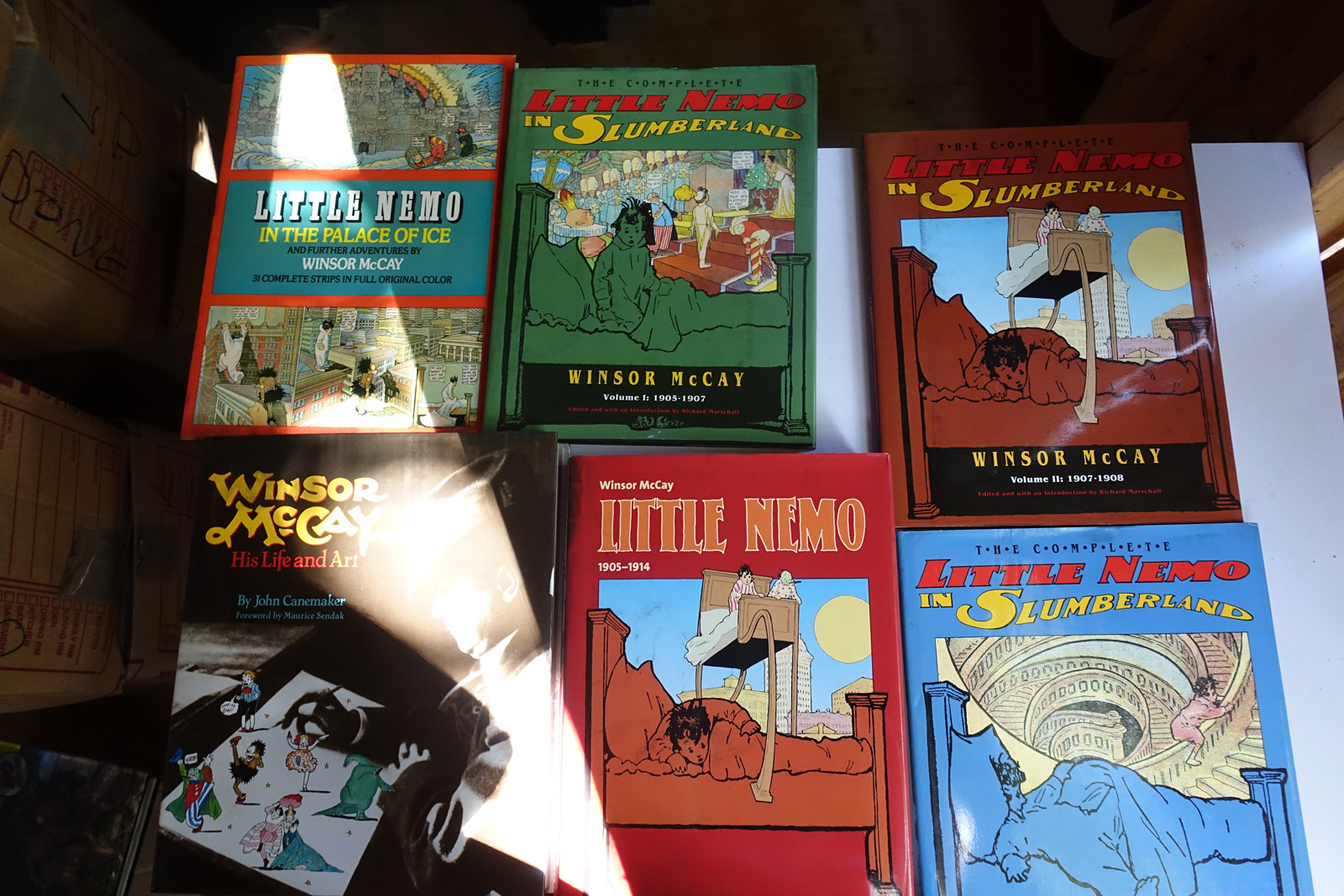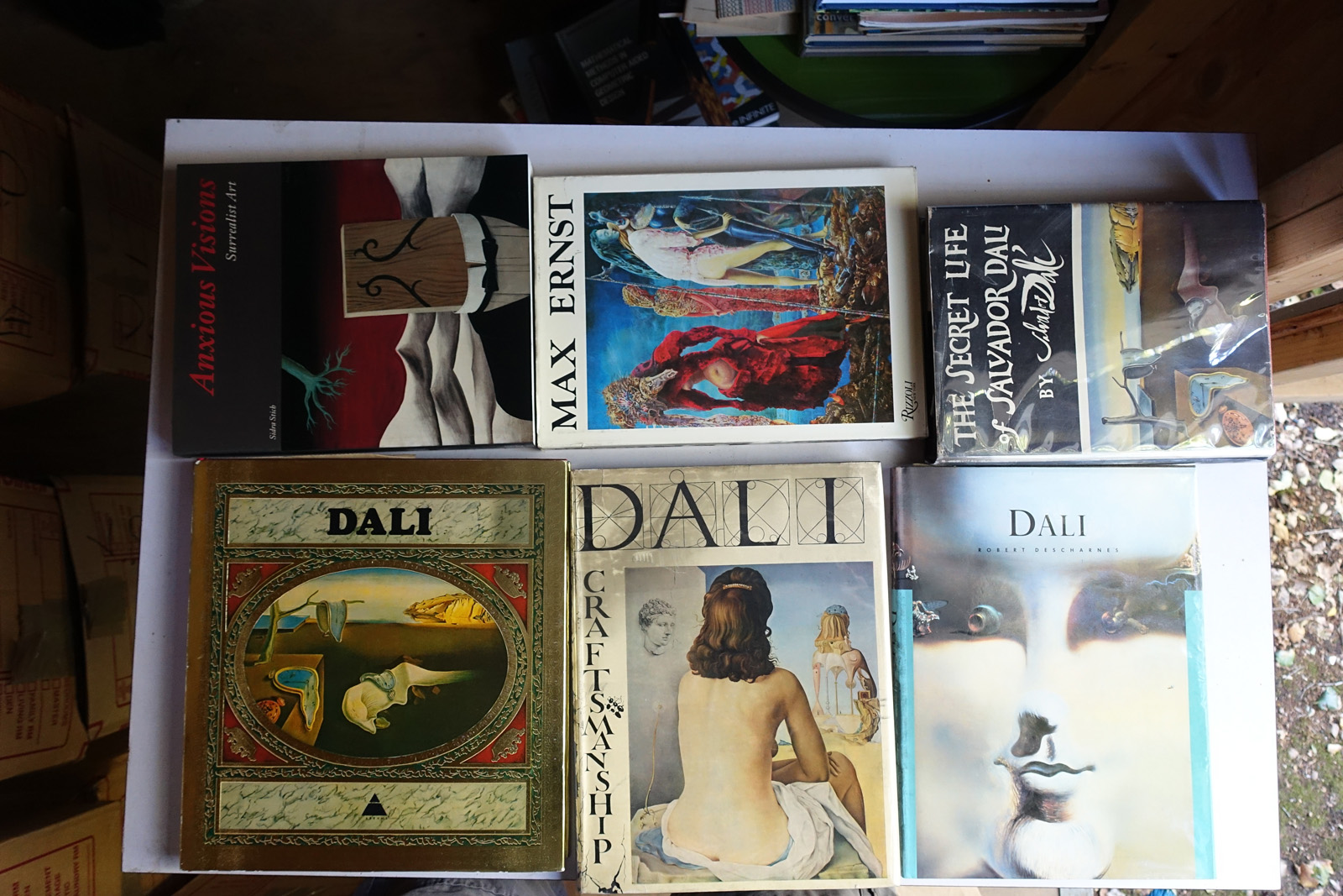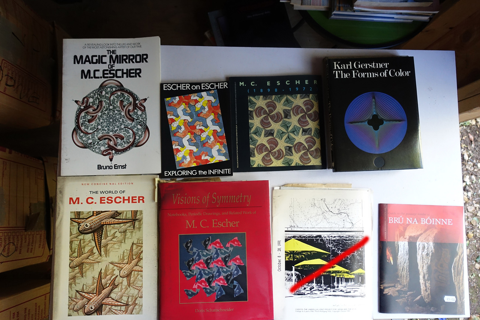 This is included to give some idea as to the current storage situation. The books are in approximately 40 boxes. The shed is well made, but it is about 20+ years old. The titles on the boxes name one or two books inside, so I can link it to the photos.