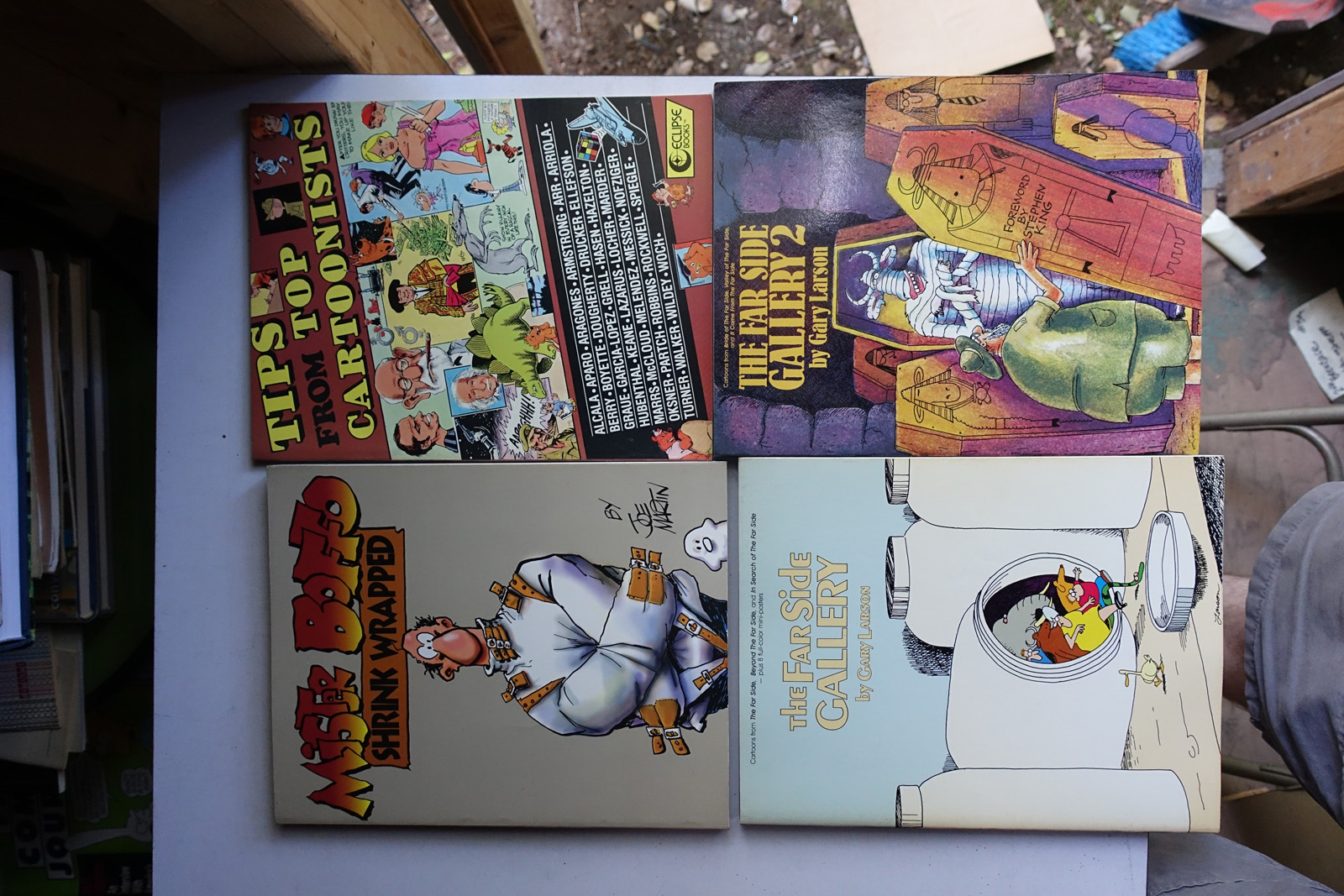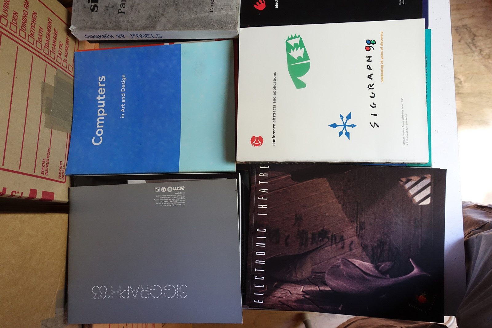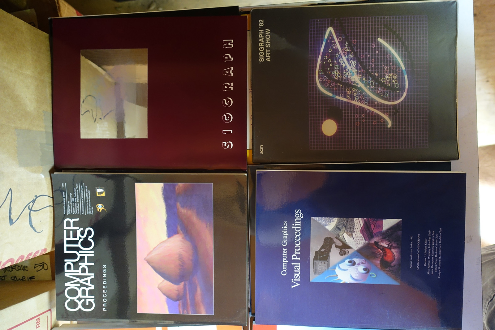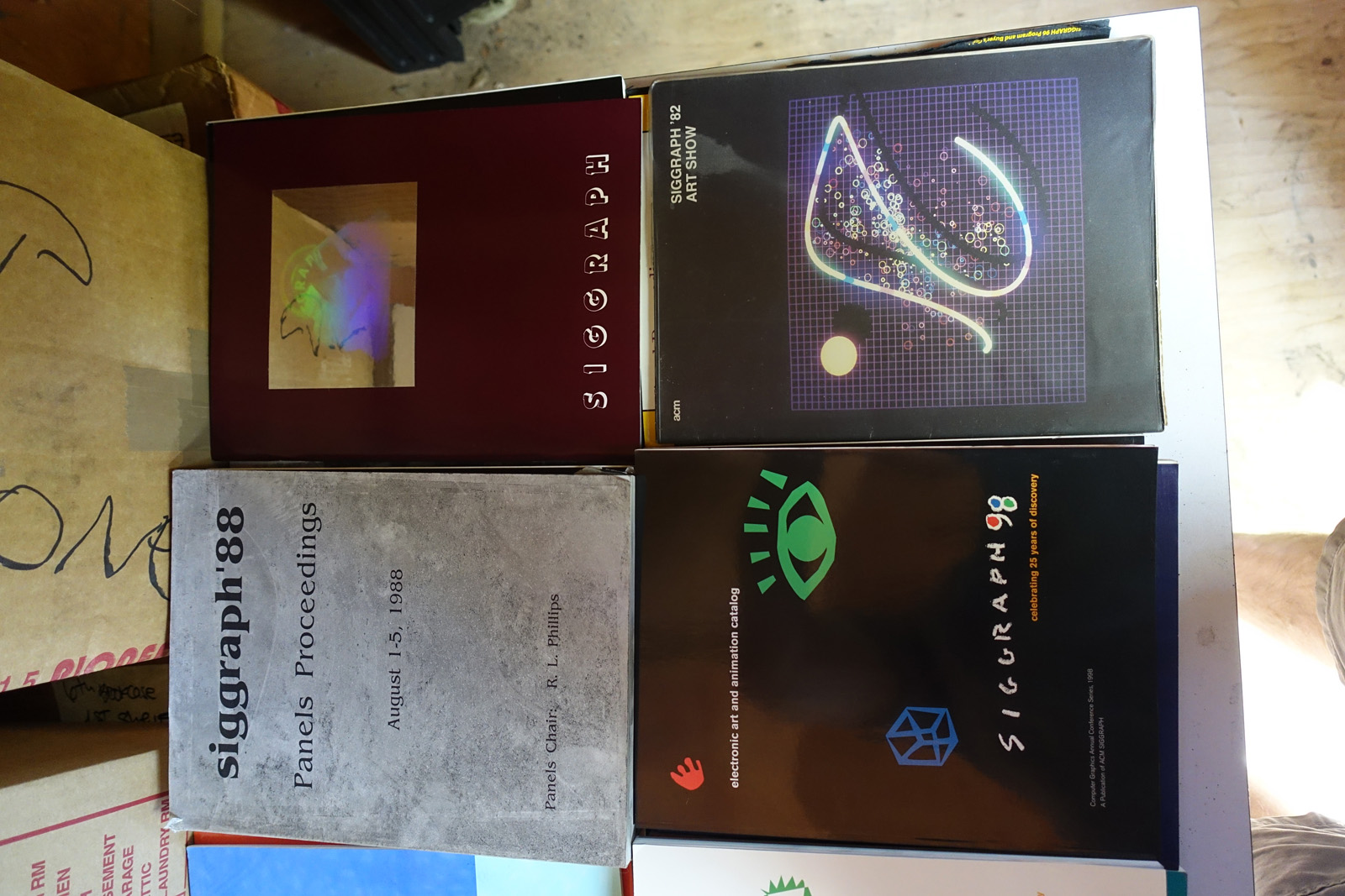The books are stored in a shed. They're reasonably safe there, but the shed is ~20 years old and I can't guarentee it's 100% water tight. The shed may need to come down this fall depending on construction on the house. Contact me via @isonno on Twitter, or jp[at]acm.org if you're interested.